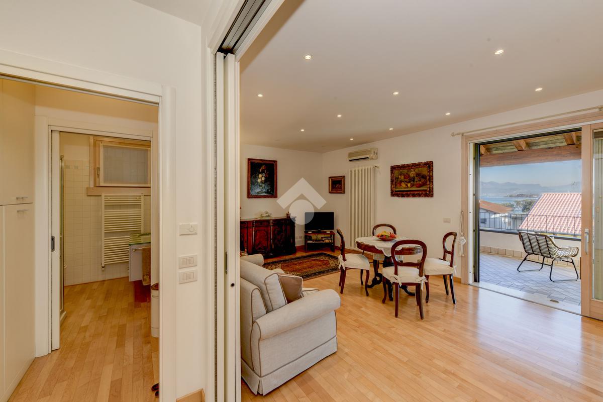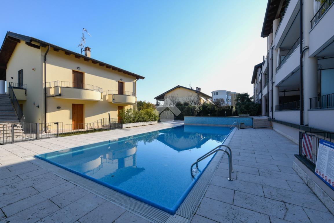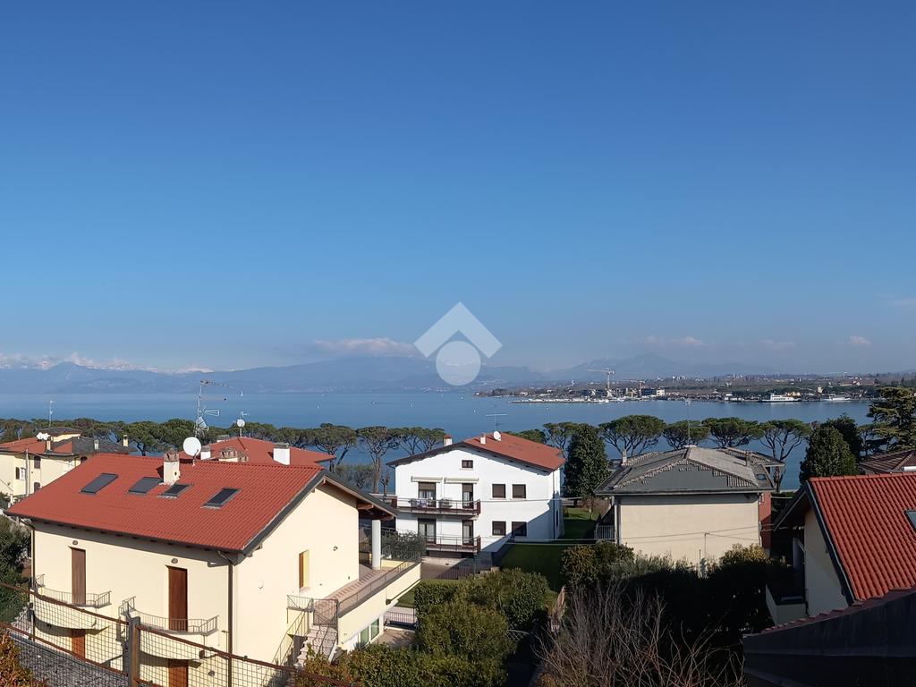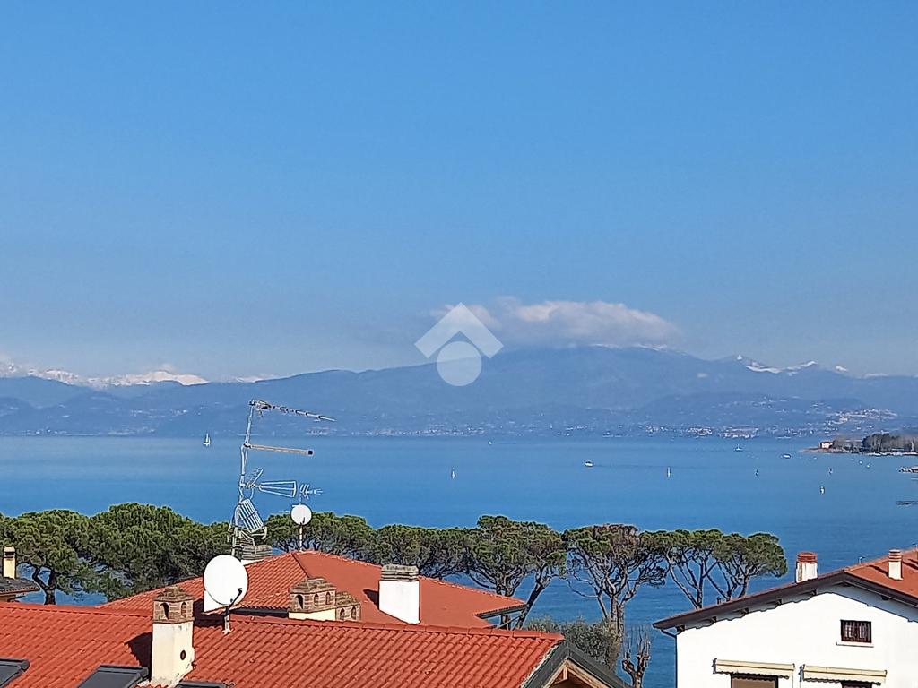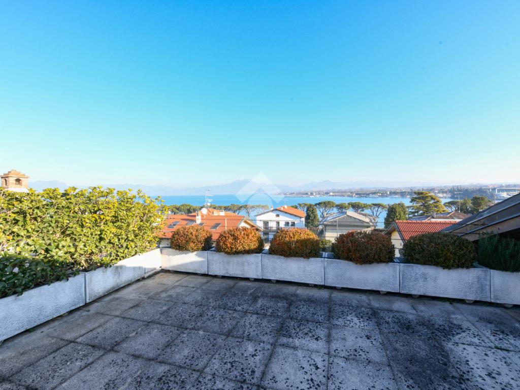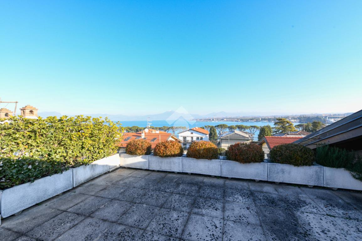 Questa accogliente unità abitativa, collocata in un tranquillo e recente Residence con piscina a soli quattrocento metri dal centro di Peschiera del Garda, offre una meravigliosa vista lago da entrambe le terrazze sui due livelli. Finemente arredato e dotato di parquet, l’appartamento si sviluppa al piano secondo ed al terzo e ultimo piano. L’ingresso avviene in corrispondenza dell'angolo cottura, unito al comodo soggiorno ma fornito di una porta scorrevole che copre tutta la lunghezza del locale, permettendo di poter usufruire di opportuna privacy in caso di necessità. Uno spazioso antibagno, nel quale trova posto la caldaia interna, conduce alla toilette finestrata dotata di doccia. Dal soggiorno si accede alla prima terrazza, spaziosa ed ideale per colazioni e pranzi all’aperto e per momenti di relax allietati dalla vista sul lago. L’elegante scala interna porta al piano superiore, mansardato con travi a vista e dotato di velux elettrici. La seconda terrazza offre un’ampia ed incantevole vista lago. Le due camere da letto sono accompagnate da un secondo servizio con doccia e da un piacevole disimpegno, utilizzabile per momenti di pace e lettura. L’ascensore condominiale, collocato in posizione comoda all’ingresso dell’appartamento, può condurre direttamente al piano interrato dove è presente un’autorimessa di generose dimensioni, dotata di finestra e di acqua corrente. La piscina comune offre momenti di svago e di tranquillità, considerando la dimensione contenuta del Residence. Soluzione ideale sia come abitazione principale, sia per chi è alla ricerca di un immobile con peculiarità uniche e di sicura rivalutazione nel tempo, dati i numerosi plus che l’appartamento può offrire unitamente alla centralità della posizione.