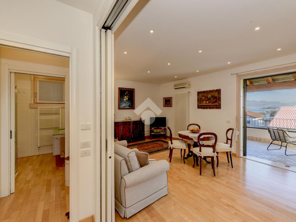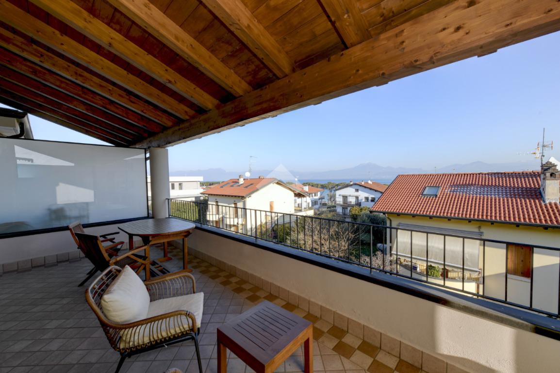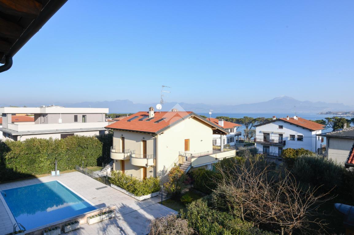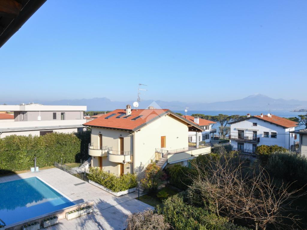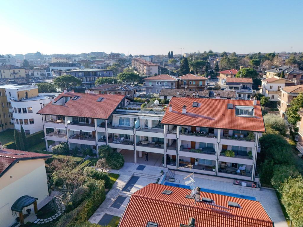 Questa accogliente unità abitativa, collocata in un tranquillo e recente Residence con piscina a soli quattrocento metri dal centro di Peschiera del Garda, offre una meravigliosa vista lago da entrambe le terrazze sui due livelli. Finemente arredato e dotato di parquet, l’appartamento si sviluppa al piano secondo ed al terzo e ultimo piano. L’ingresso avviene in corrispondenza dell'angolo cottura, unito al comodo soggiorno ma fornito di una porta scorrevole che copre tutta la lunghezza del locale, permettendo di poter usufruire di opportuna privacy in caso di necessità. Uno spazioso antibagno, nel quale trova posto la caldaia interna, conduce alla toilette finestrata dotata di doccia. Dal soggiorno si accede alla prima terrazza, spaziosa ed ideale per colazioni e pranzi all’aperto e per momenti di relax allietati dalla vista sul lago. L’elegante scala interna porta al piano superiore, mansardato con travi a vista e dotato di velux elettrici. La seconda terrazza offre un’ampia ed incantevole vista lago. Le due camere da letto sono accompagnate da un secondo servizio con doccia e da un piacevole disimpegno, utilizzabile per momenti di pace e lettura. L’ascensore condominiale, collocato in posizione comoda all’ingresso dell’appartamento, può condurre direttamente al piano interrato dove è presente un’autorimessa di generose dimensioni, dotata di finestra e di acqua corrente. La piscina comune offre momenti di svago e di tranquillità, considerando la dimensione contenuta del Residence. Soluzione ideale sia come abitazione principale, sia per chi è alla ricerca di un immobile con peculiarità uniche e di sicura rivalutazione nel tempo, dati i numerosi plus che l’appartamento può offrire unitamente alla centralità della posizione.