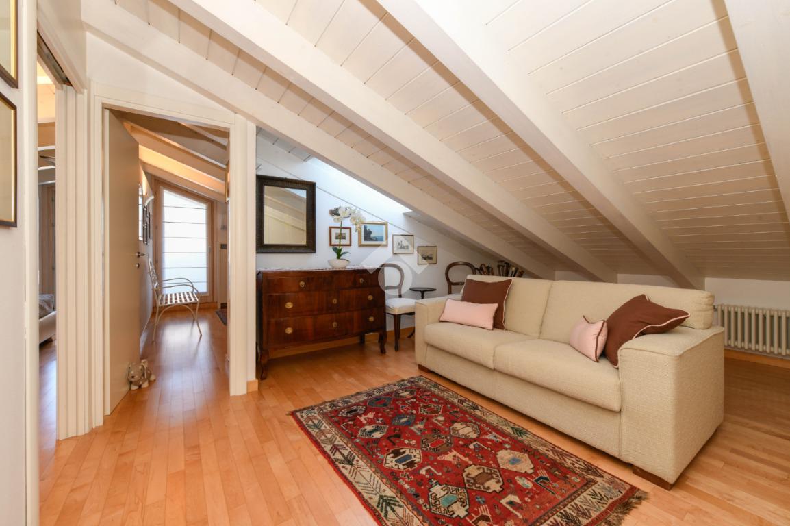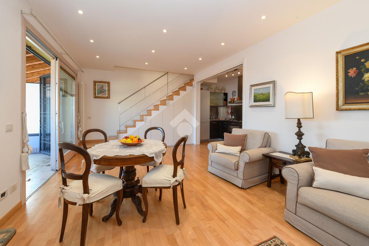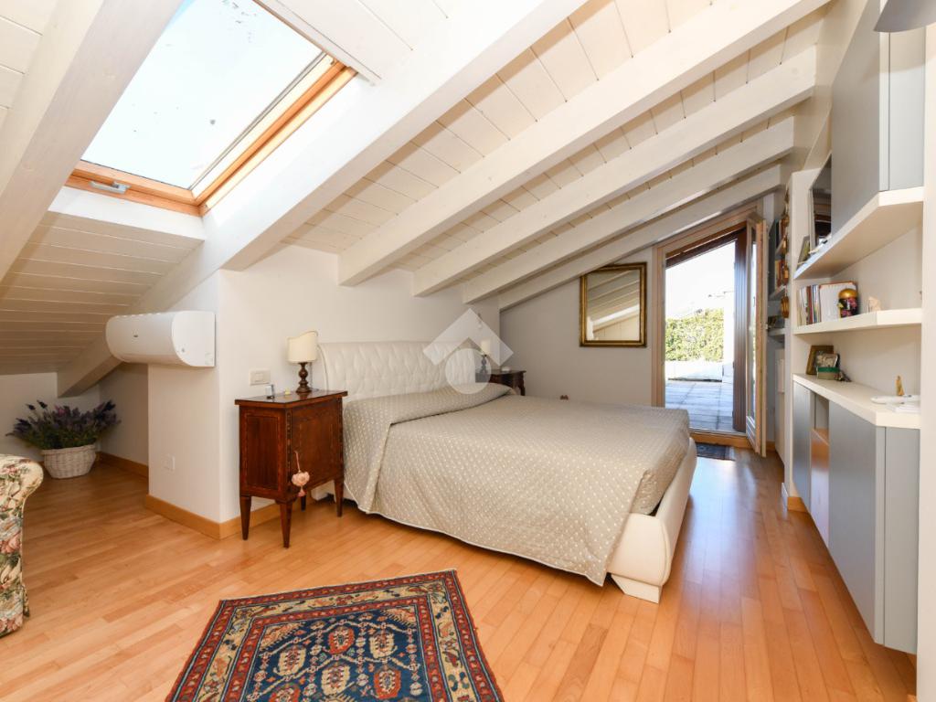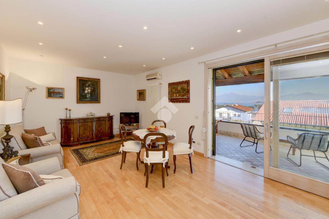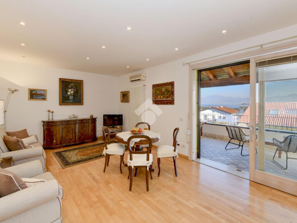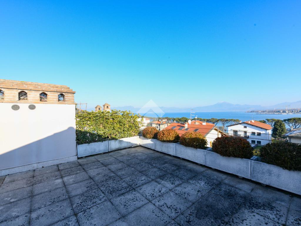 Questa accogliente unità abitativa, collocata in un tranquillo e recente Residence con piscina a soli quattrocento metri dal centro di Peschiera del Garda, offre una meravigliosa vista lago da entrambe le terrazze sui due livelli. Finemente arredato e dotato di parquet, l’appartamento si sviluppa al piano secondo ed al terzo e ultimo piano. L’ingresso avviene in corrispondenza dell'angolo cottura, unito al comodo soggiorno ma fornito di una porta scorrevole che copre tutta la lunghezza del locale, permettendo di poter usufruire di opportuna privacy in caso di necessità. Uno spazioso antibagno, nel quale trova posto la caldaia interna, conduce alla toilette finestrata dotata di doccia. Dal soggiorno si accede alla prima terrazza, spaziosa ed ideale per colazioni e pranzi all’aperto e per momenti di relax allietati dalla vista sul lago. L’elegante scala interna porta al piano superiore, mansardato con travi a vista e dotato di velux elettrici. La seconda terrazza offre un’ampia ed incantevole vista lago. Le due camere da letto sono accompagnate da un secondo servizio con doccia e da un piacevole disimpegno, utilizzabile per momenti di pace e lettura. L’ascensore condominiale, collocato in posizione comoda all’ingresso dell’appartamento, può condurre direttamente al piano interrato dove è presente un’autorimessa di generose dimensioni, dotata di finestra e di acqua corrente. La piscina comune offre momenti di svago e di tranquillità, considerando la dimensione contenuta del Residence. Soluzione ideale sia come abitazione principale, sia per chi è alla ricerca di un immobile con peculiarità uniche e di sicura rivalutazione nel tempo, dati i numerosi plus che l’appartamento può offrire unitamente alla centralità della posizione.