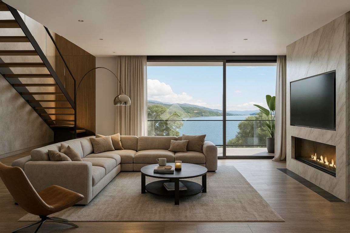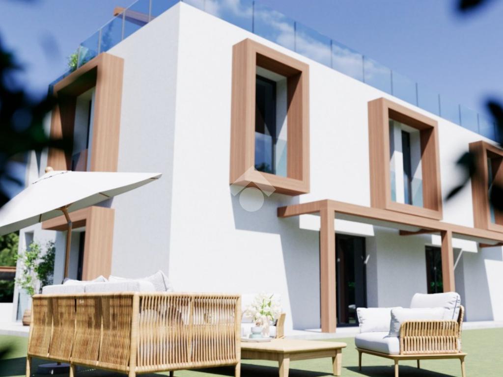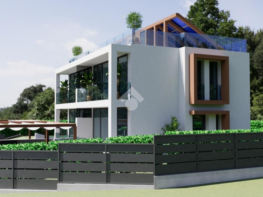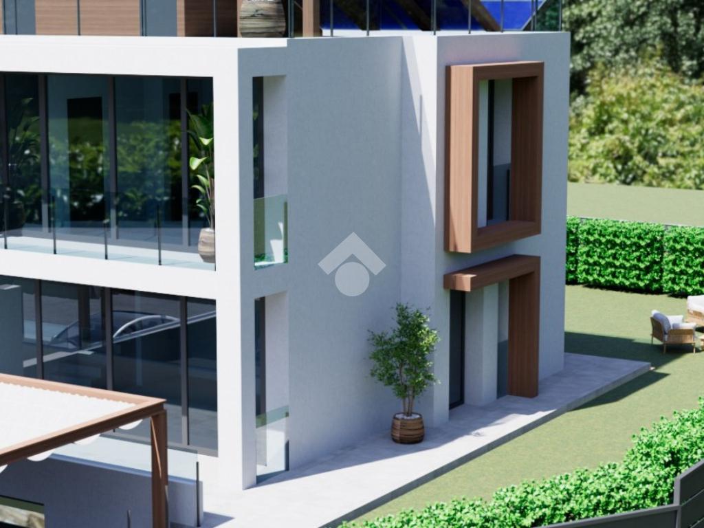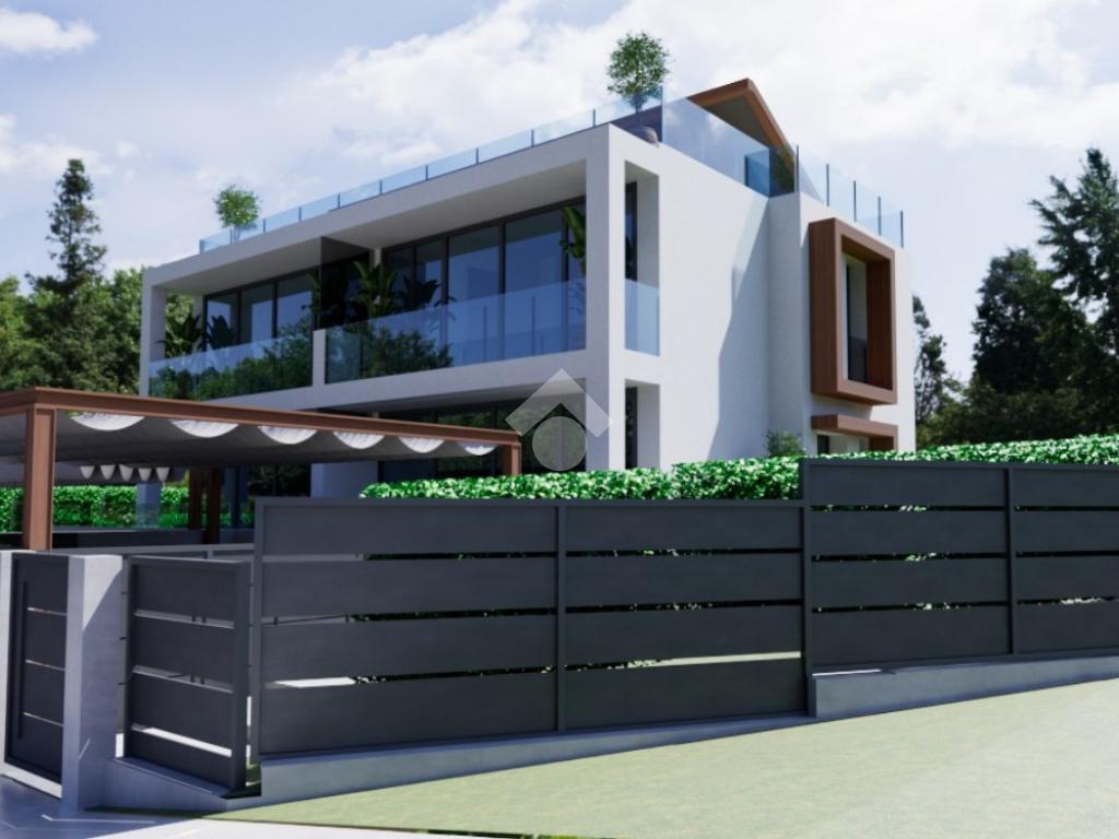 Peschiera del Garda – In contesto tranquillo proponiamo in vendita un’elegante porzione di villa bifamiliare con vista lago disposta su due livelli oltre ad interrato. La villa è in fase di completamento e si trova in posizione collinare, dalla quale si possono raggiungere in pochi minuti i parcheggi del centro, il lago e principali servizi ed attività del paese. La costruzione offre elevati standard a livello di qualità dei materiali e di risparmio energetico. Al piano terra, dotato di servizio, l’ingresso ci conduce nel luminoso soggiorno, collegato alla loggia e alla cucina a vista, dotata a sua volta di porta-finestra che permette di uscire sul portico esterno. La villa è circondata su due lati da un piacevole giardino privato che offre momenti di relax senza rinunciare alla privacy. Salendo al piano superiore, ci troviamo nel corridoio che conduce ad una comoda camera matrimoniale con bagno padronale e con un piacevole balcone, ad altre due stanze e ad un ulteriore servizio. La scala porta poi alla terrazza di oltre quaranta metri quadrati presente al livello della copertura piana dell’edificio, dove è presente il vano tecnico. L’interrato è composto da un doppio locale di circa cinquanta metri quadrati totali, nel quale si possono creare spazi per i propri interessi personali ed hobbies e per momenti conviviali. Sono presenti due posti auto di ampie dimensioni, che consentono di posteggiare comodamente due automobili affiancate. La posizione dell’immobile offre la possibilità di godere di una meravigliosa vista lago, ulteriore plus di una villa bifamiliare unica nel suo genere per posizione e utilizzo degli spazi.