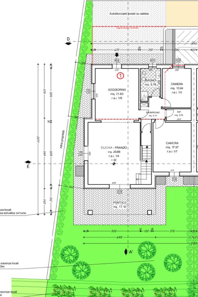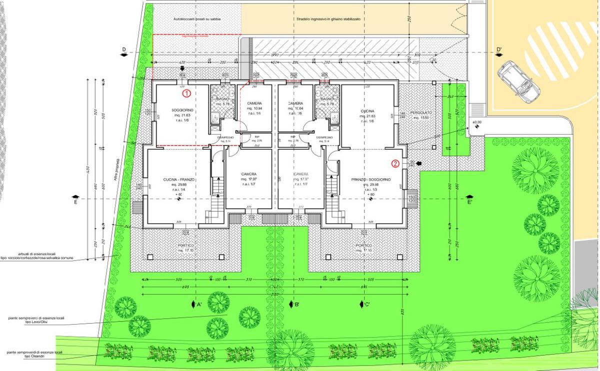 L’abitazione sarà sviluppata su due livelli oltre ad interrato, ed arricchita da un giardino privato con porticato.