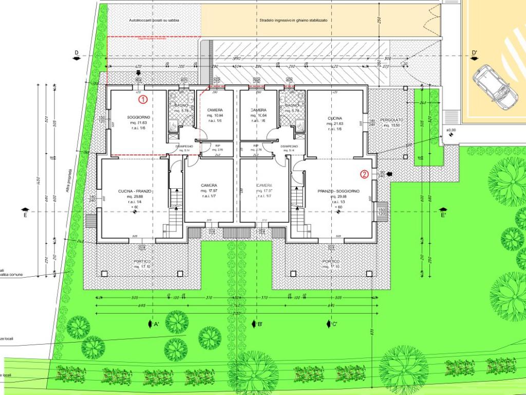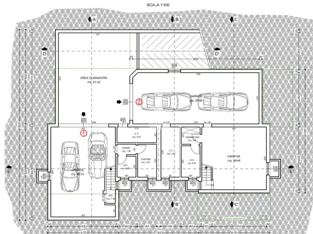 Il piano interrato permetterà di realizzare un garage doppio, una cantina e una lavanderia, oltre al locale tecnico.