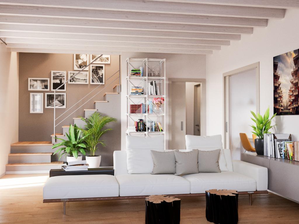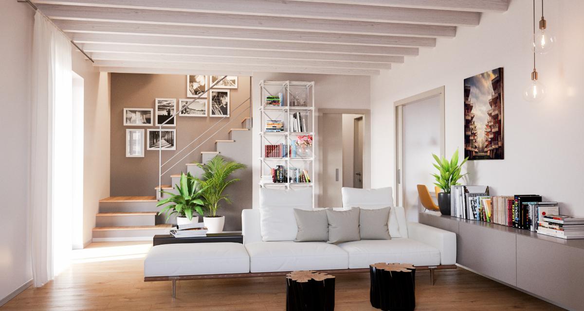 Al piano terra sono previsti un ampio soggiorno, una cucina, due camere da letto, un ripostiglio e il bagno.